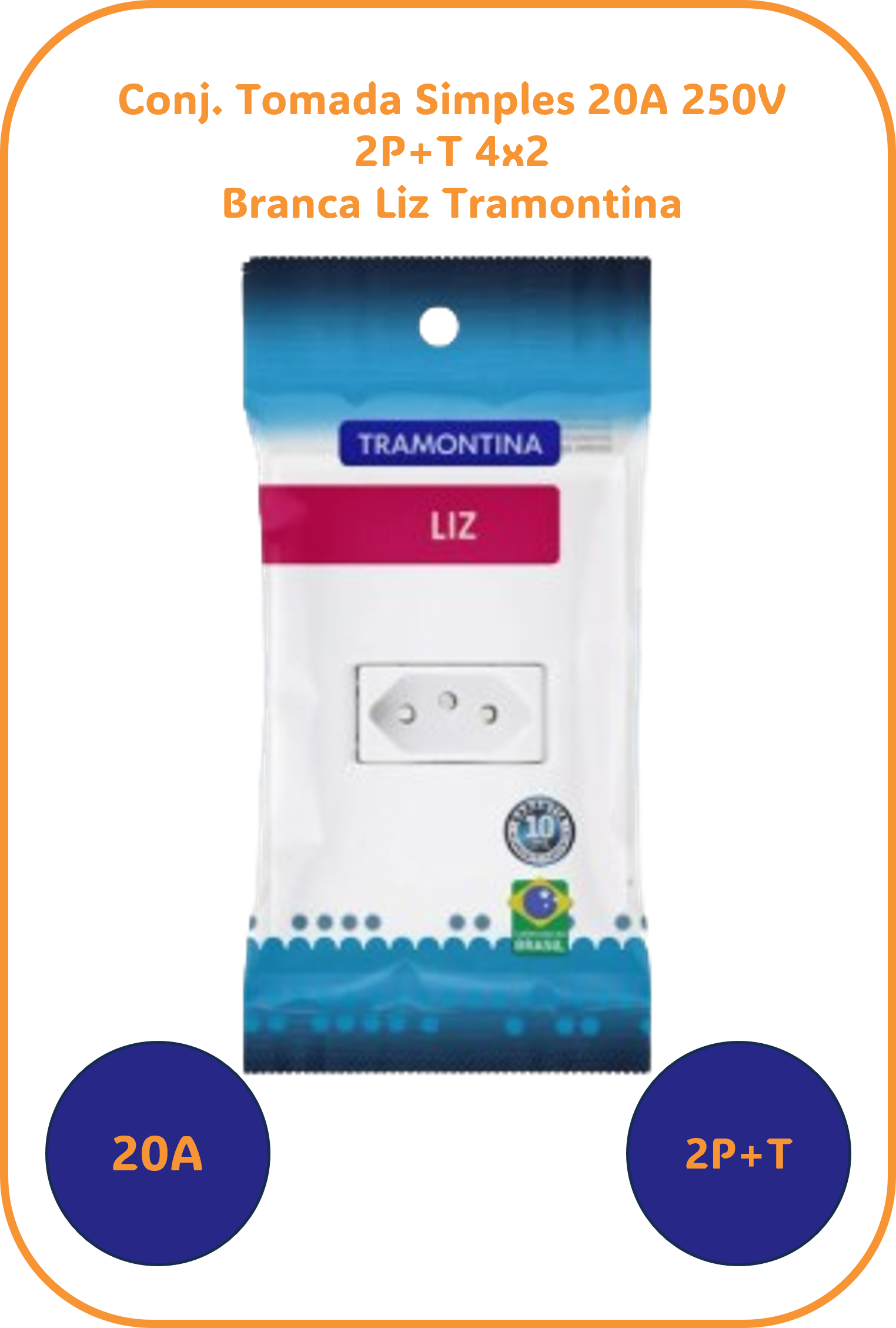 CONJUNTO TOMADA SIMPLES 2P+T 10A e 20A/250V 4 x 2 LIZ TRAMONTINA